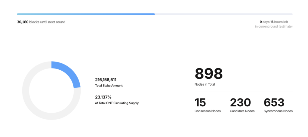 As of February, the Ontology network has processed over 20,188,999 total transactions. The network continues to operate with 898 active nodes and a total stake of 216,135,075 ONT, reflecting sustained commitment from the validator community and healthy network security.